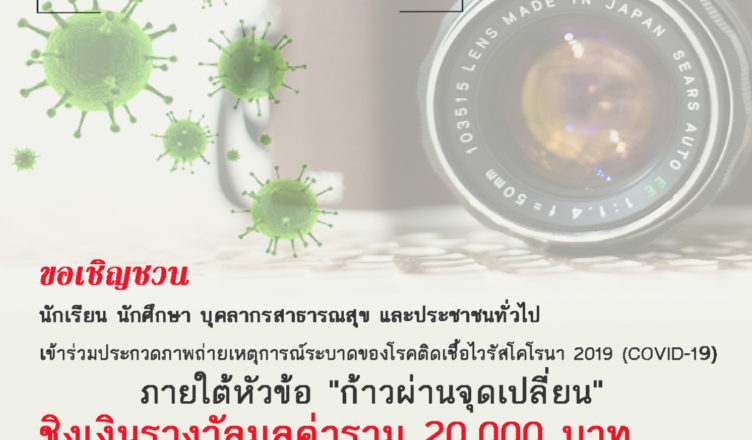 ขอเชิญชวนส่งผลงานเข้าร่วมประกวดภาพถ่ายประวัติศาสตร์เหตุการณ์การระบาดโรคติดเชื้อไวรัสโคโรนา 2019 ภายใต้หัวข้อ “ก้าวผ่านจุดเปลี่ยน”