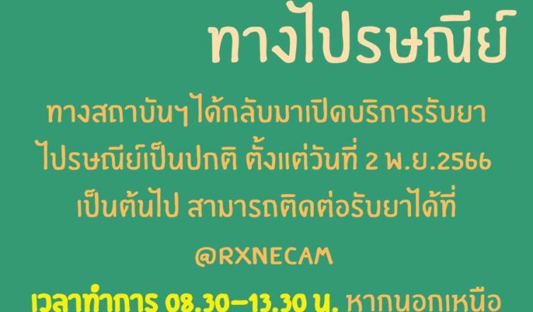 ทางกลุ่มงานเภสัชกรรม ขอเปิดบริการรับยาไปรษณีย์ โดยเริ่มตั้งแต่วันที่ 2 พ.ย. 2566 เป็นต้นไป