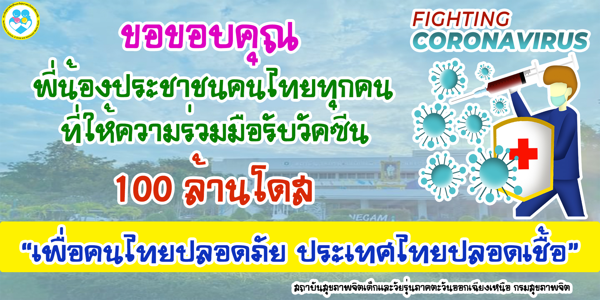 ขอขอบคุณพี่น้องประชาชนคนไทยทุกคน ที่ให้ความร่วมมือรับวัคซีน 100 ล้านโดส Monday December 20th, 2021admin